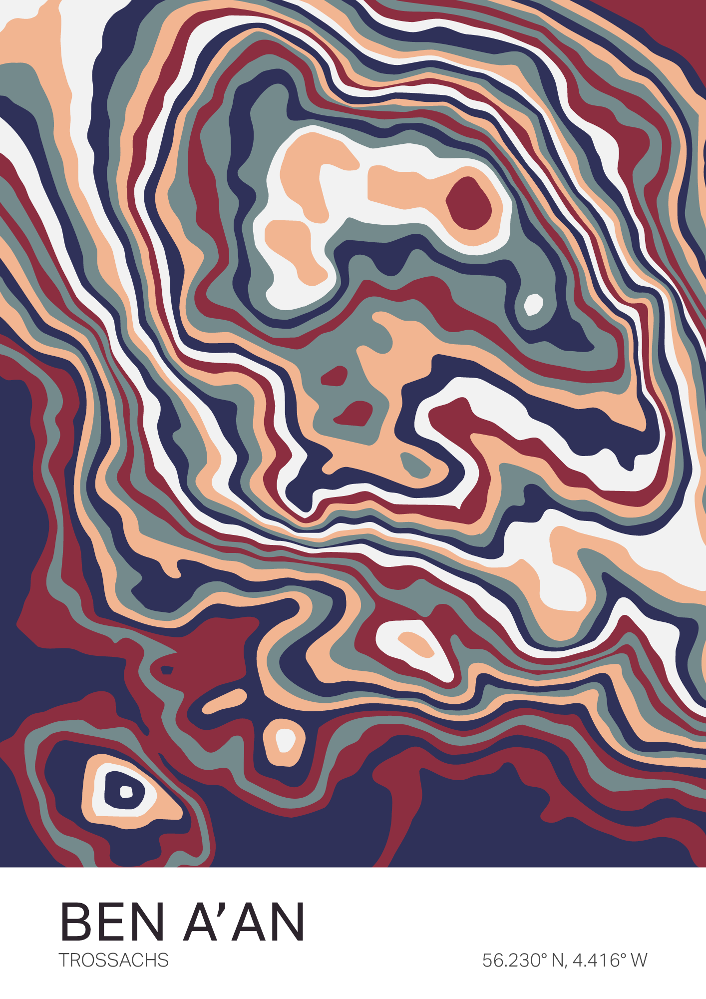 A vibrant, colorful map of Ben A’an — a small but mighty peak in the Trossachs, famed for its pyramid shape and breathtaking views across Loch Katrine.