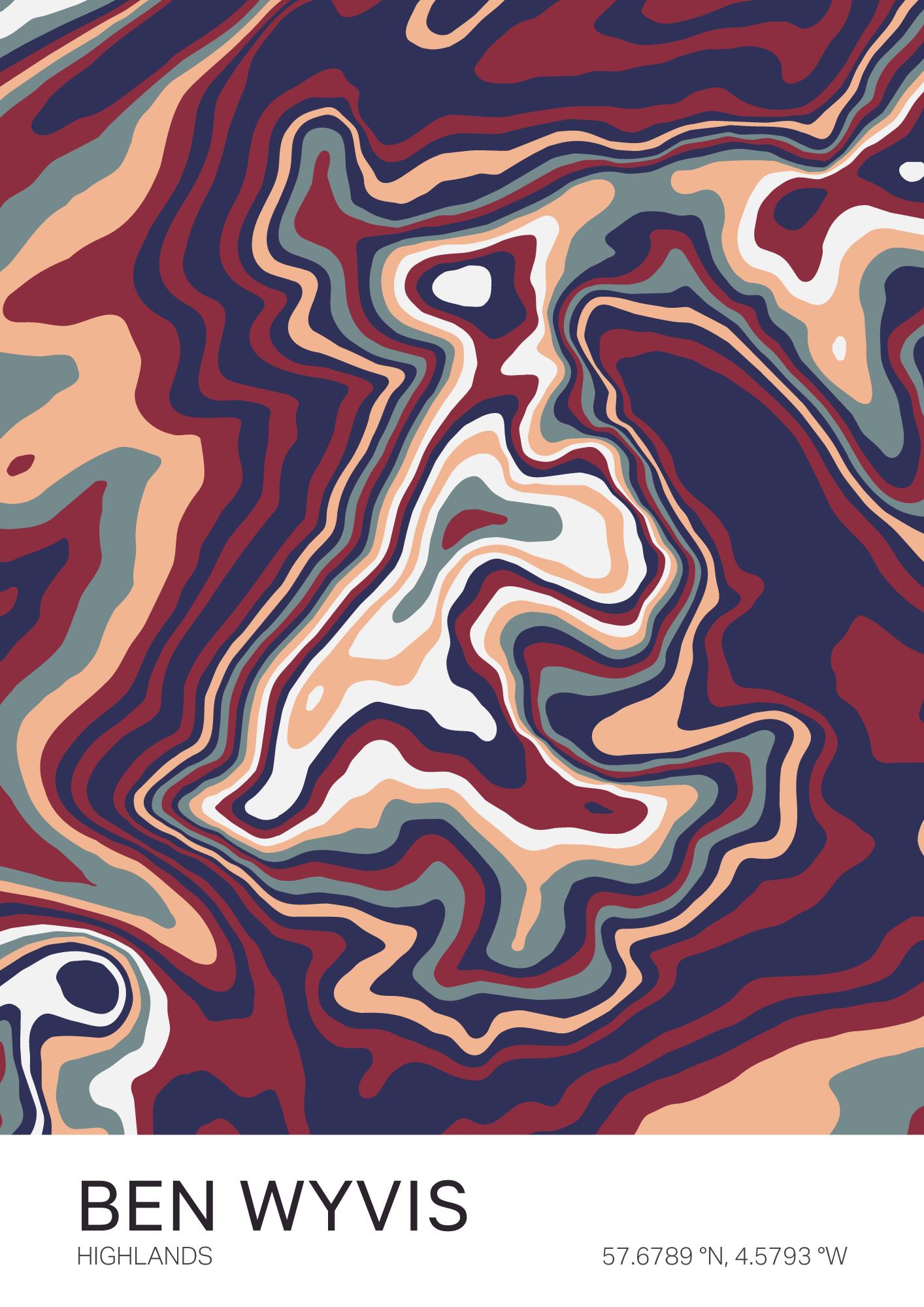 A vibrant, colorful map of Ben Wyvis — a grand isolated Munro north of Inverness, its long whale-backed ridge commanding vast views over the northern Highlands.