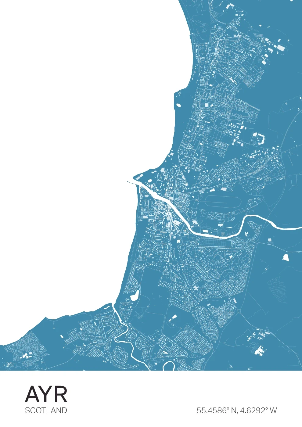 A detailed map of Brecon, centred around the River Usk and the gateway to the Brecon Beacons National Park. The design captures both structure and setting, creating a calm, natural feel. Ideal for those who know the area or enjoy the landscapes of South Wales.