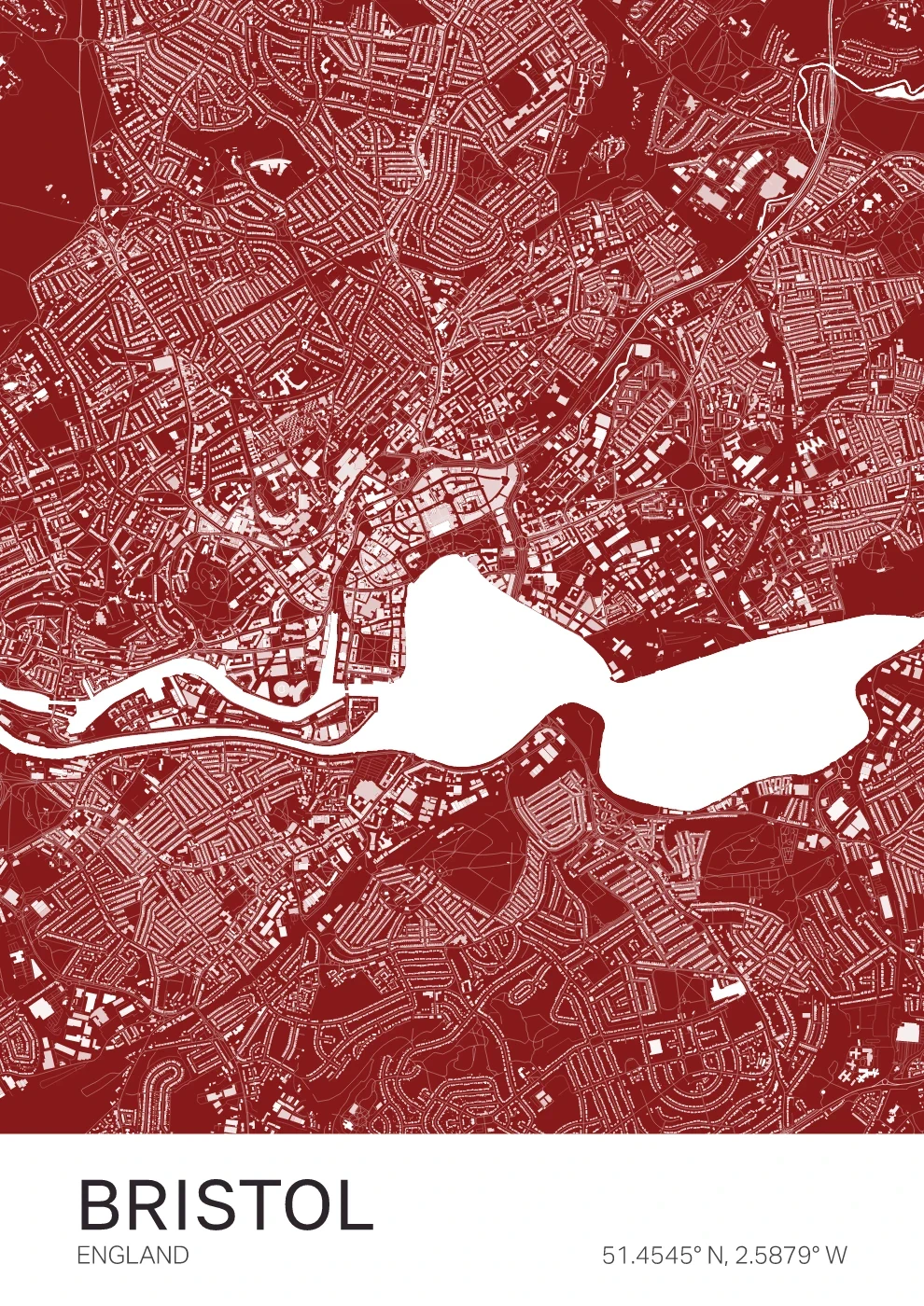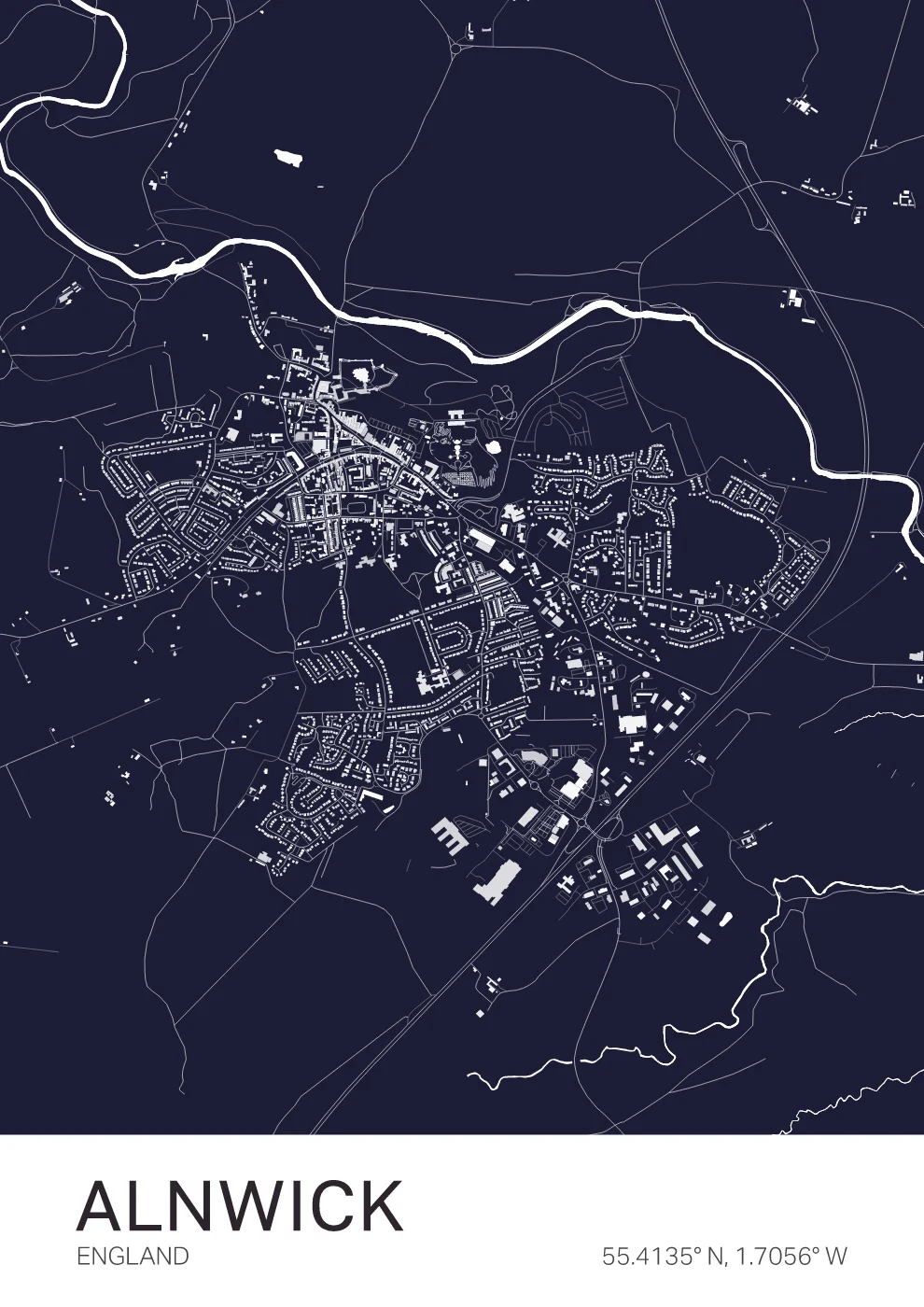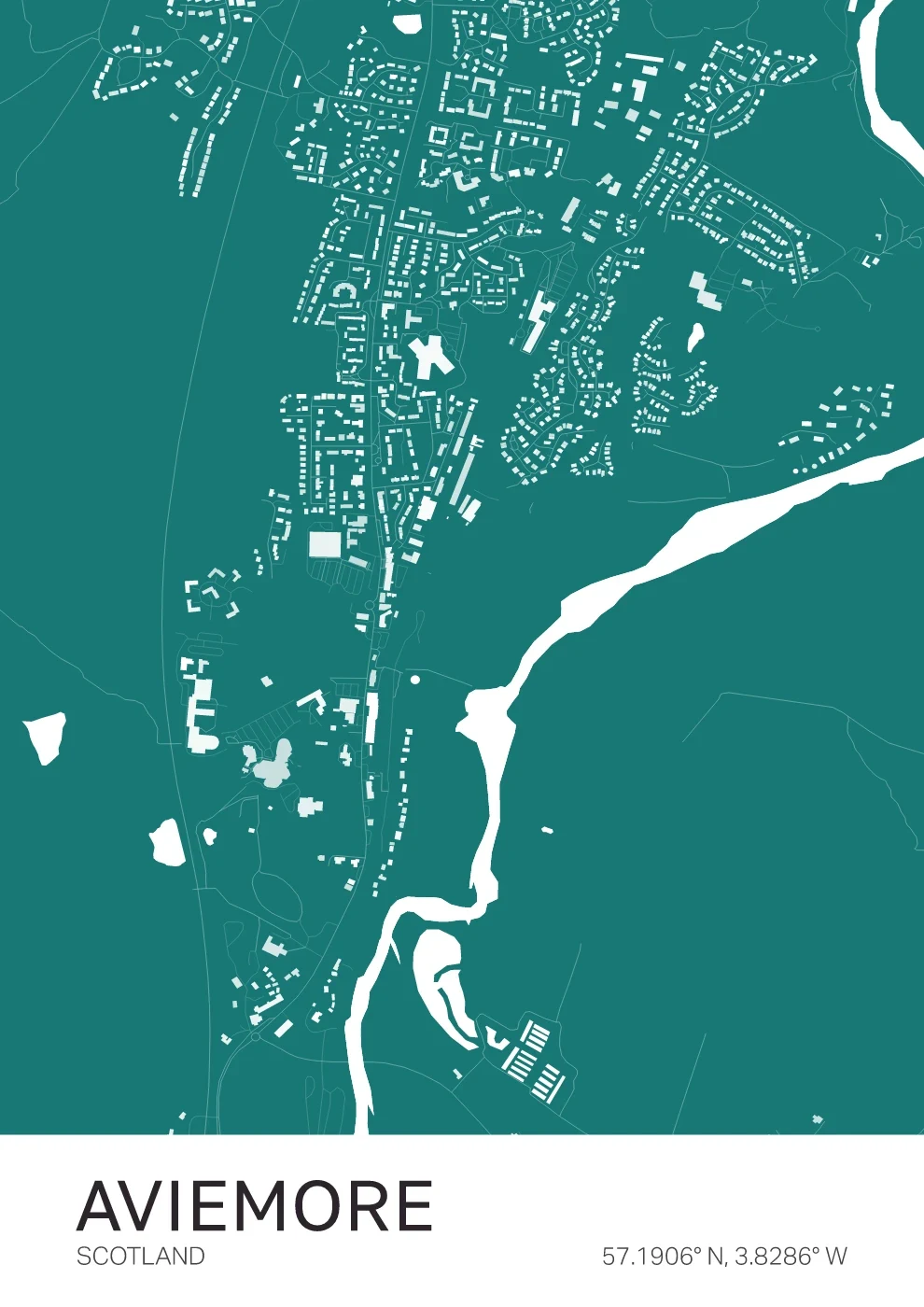 A refined map of Cirencester, capturing the layout of this historic Cotswold town, once a major Roman settlement. A balanced and understated design that suits both modern and traditional interiors. A great option for those connected to the Cotswolds.