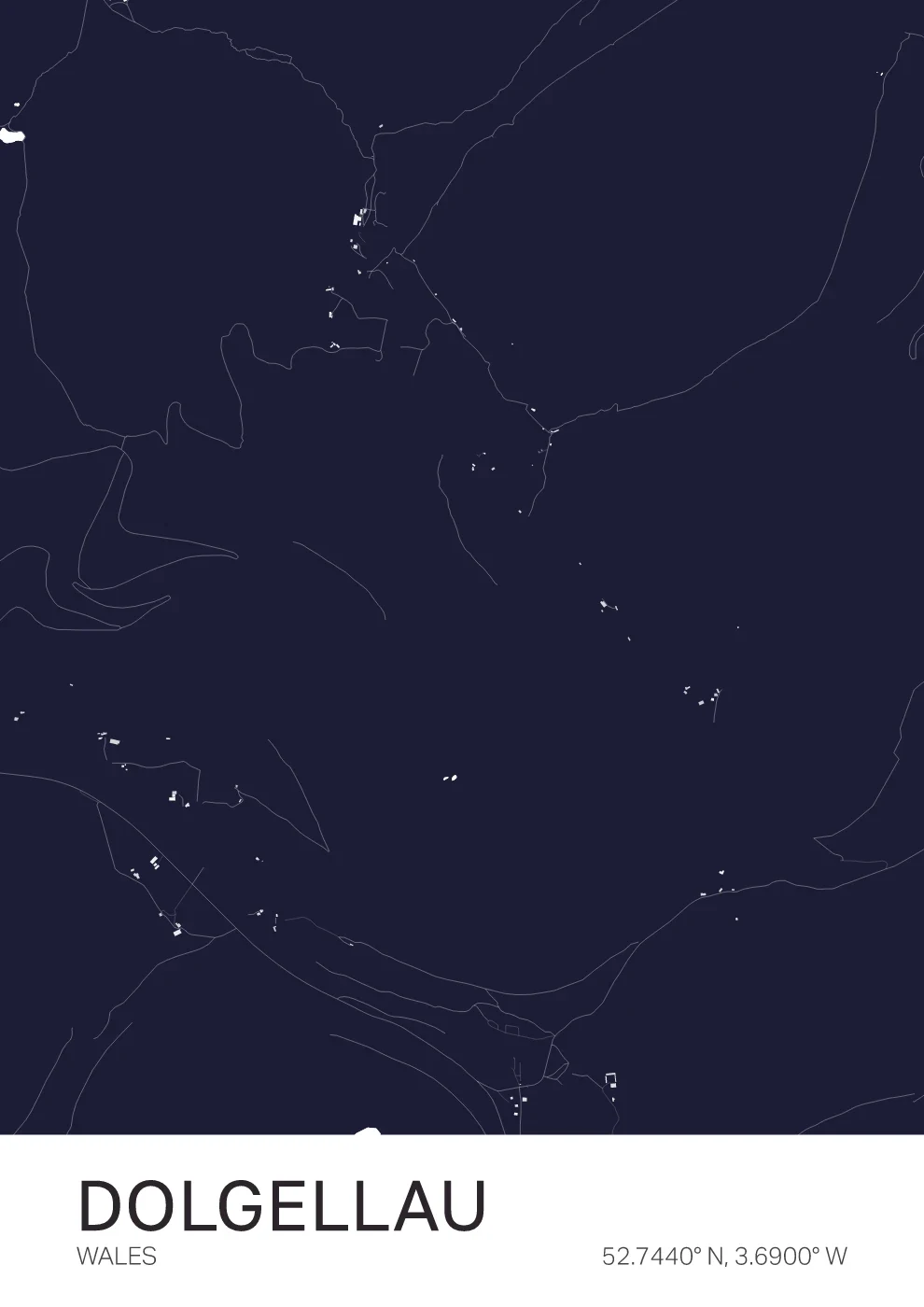 A finely detailed map of Dolgellau, set at the foot of Cadair Idris and shaped by the surrounding Snowdonia landscape. The design captures both structure and setting, creating a calm and grounded feel. A natural fit for those who know Eryri or have spent time in this part of North Wales.