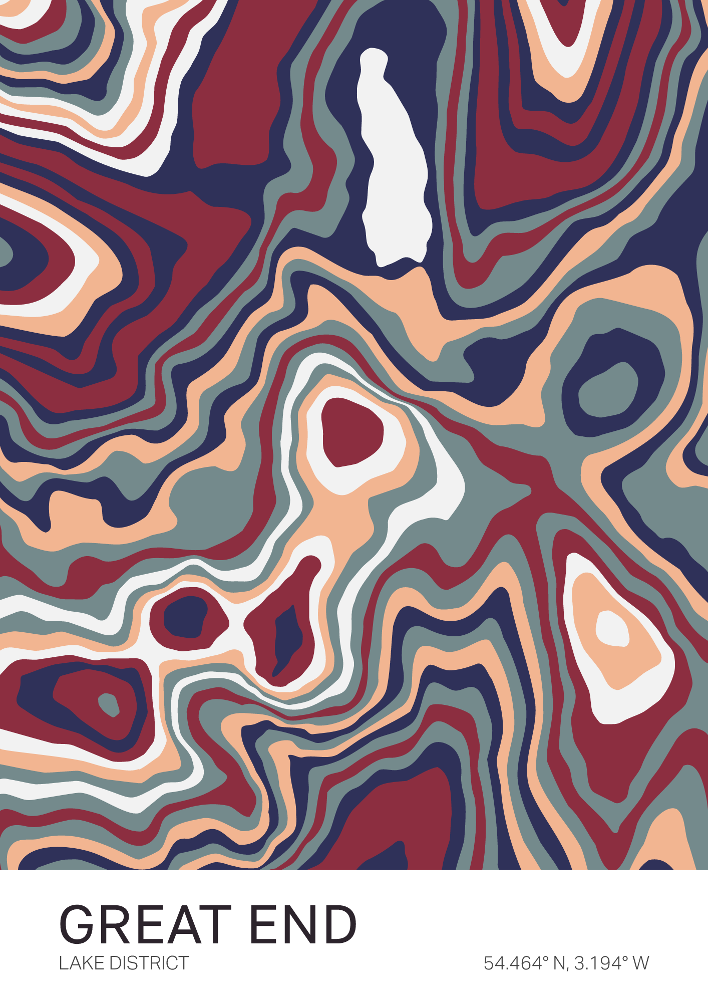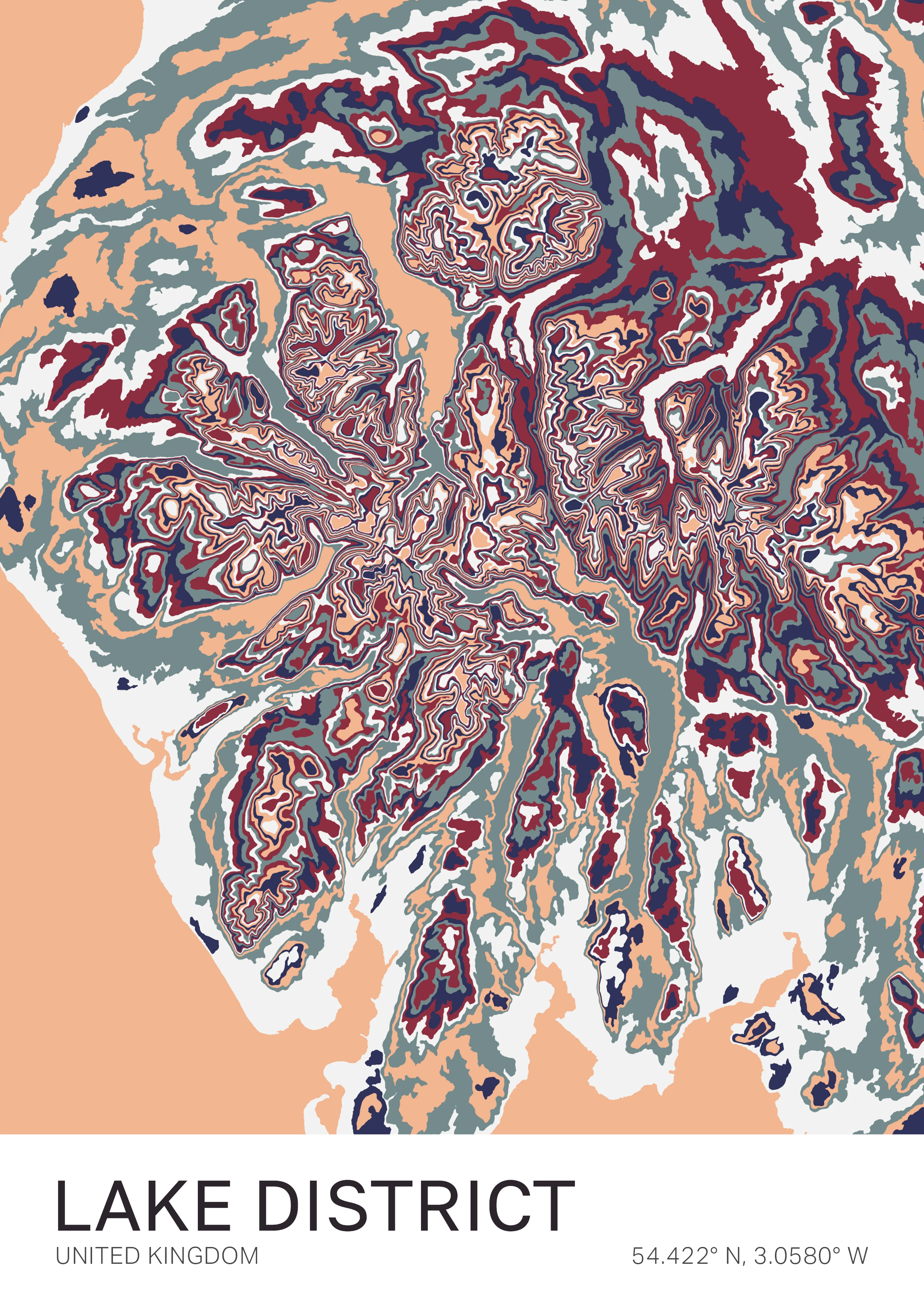 A vibrant depiction of the Lake District, renowned for its dramatic mountainous landscapes in England.