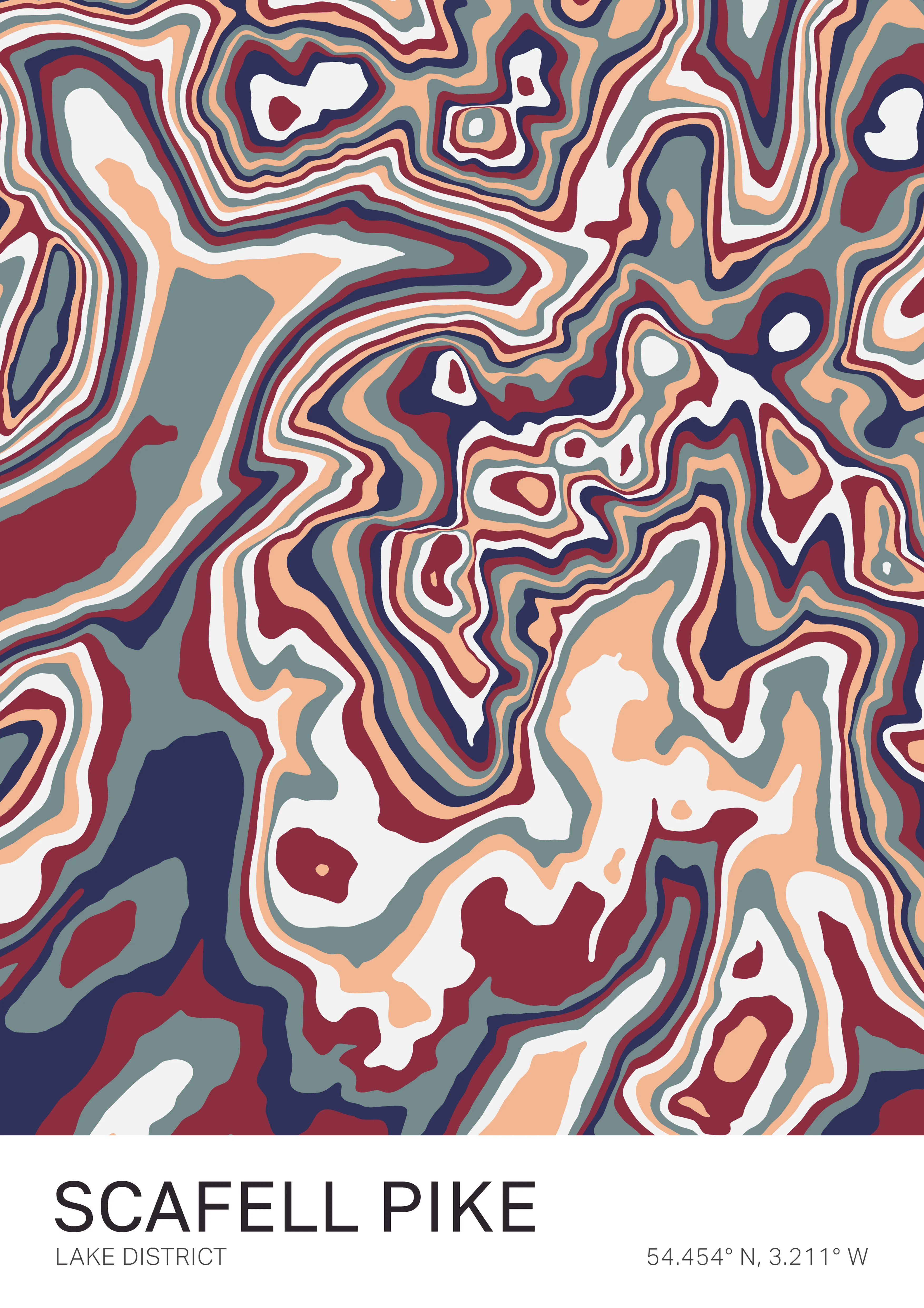 Produced using our proprietary mapping process and printed at 300dpi on premium 220gsm matte paper, the artwork emphasises crisp contours and strong colour contrast.