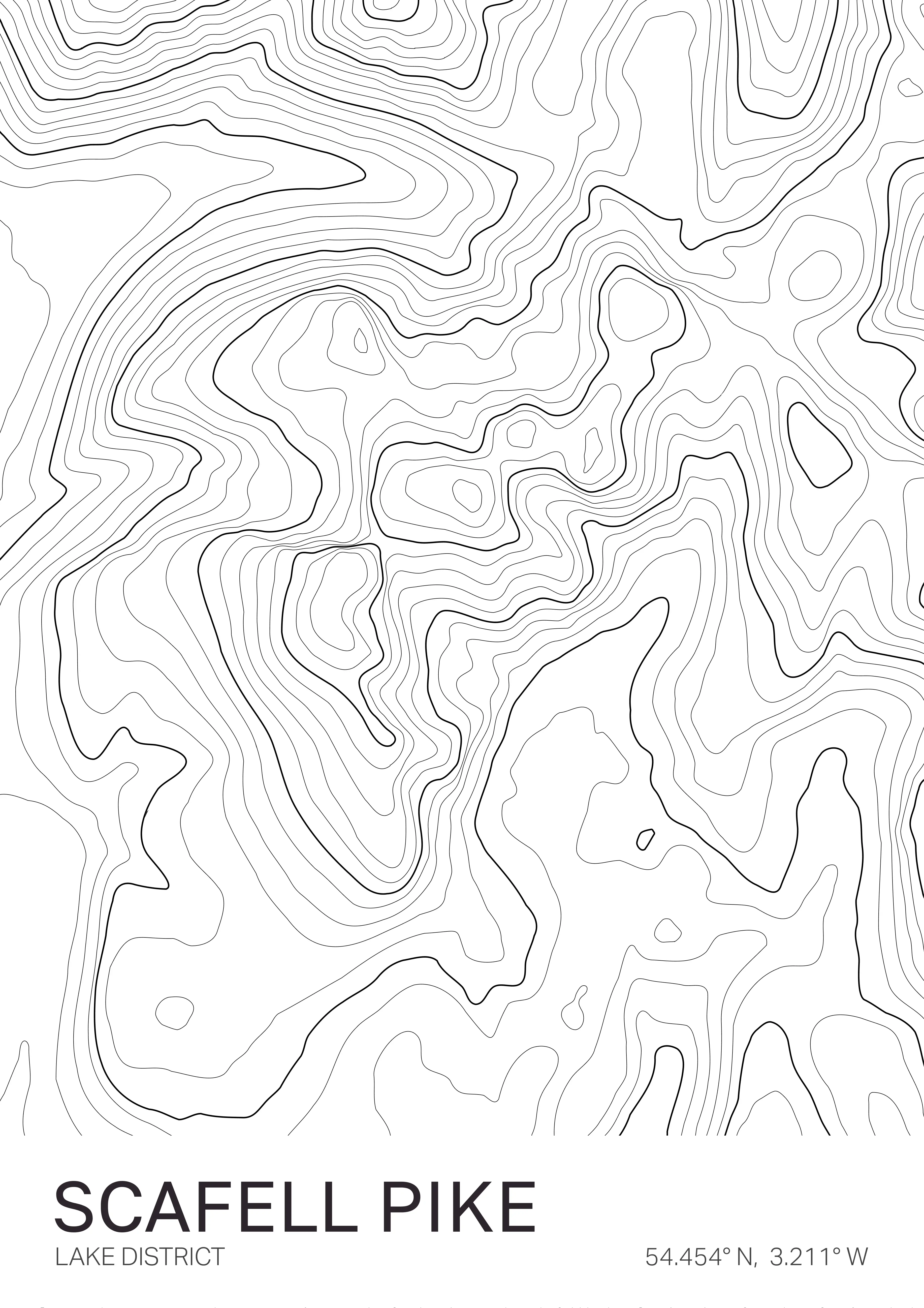 Produced using our proprietary mapping process and printed at 300dpi on premium 220gsm matte paper, with bold black linework for crisp contours and high-contrast detail.