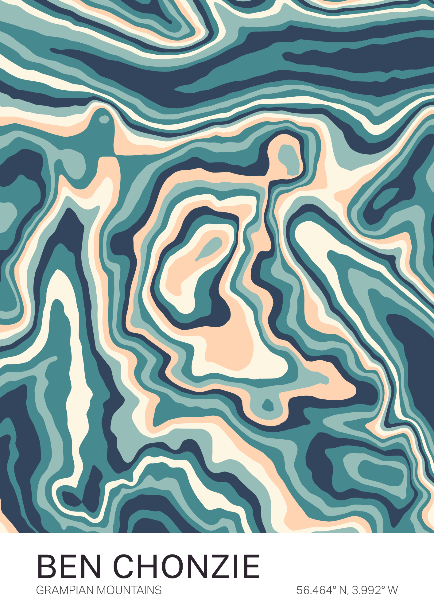 A vibrant, colorful map of Ben Vane — one of the Arrochar Alps near Loch Lomond, a compact yet rugged Munro known for its steep slopes and panoramic summit views.