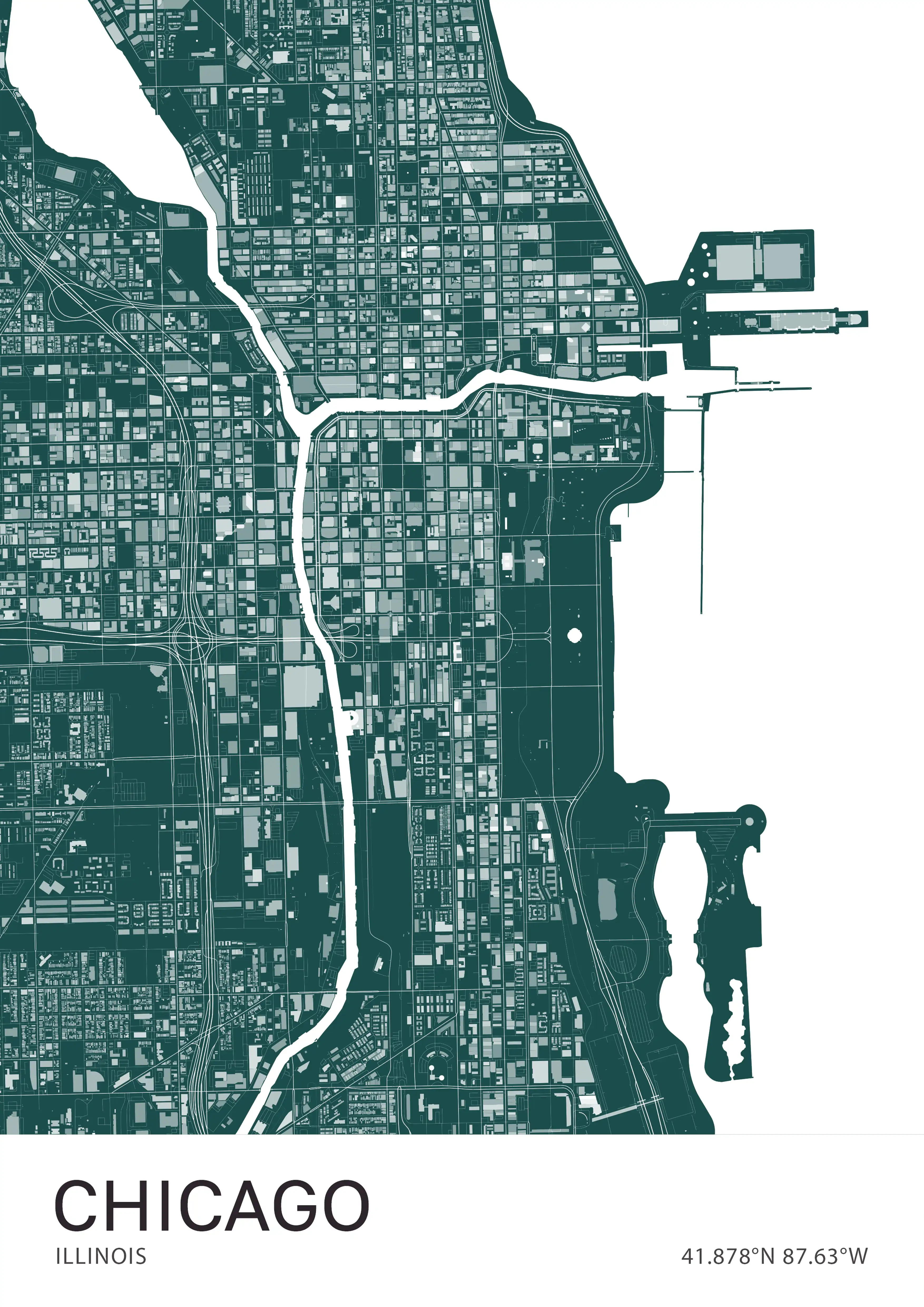 A detailed map of Chicago, USA’s iconic city, renowned for its striking architecture and vibrant urban culture.