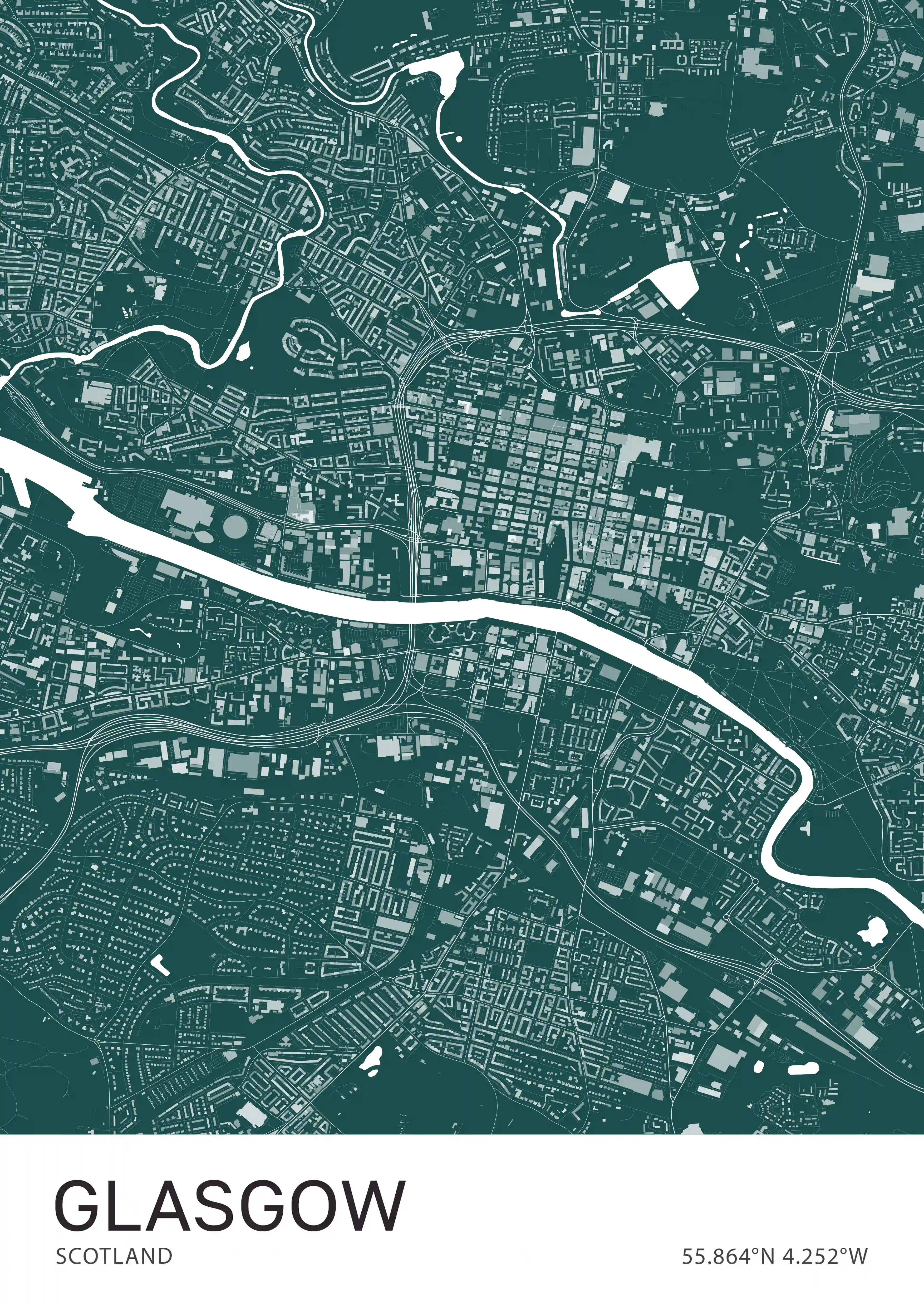 This detailed city map wall art suits modern interiors and makes a great gift for Glaswegians, students, or anyone who’s lived along the Clyde.